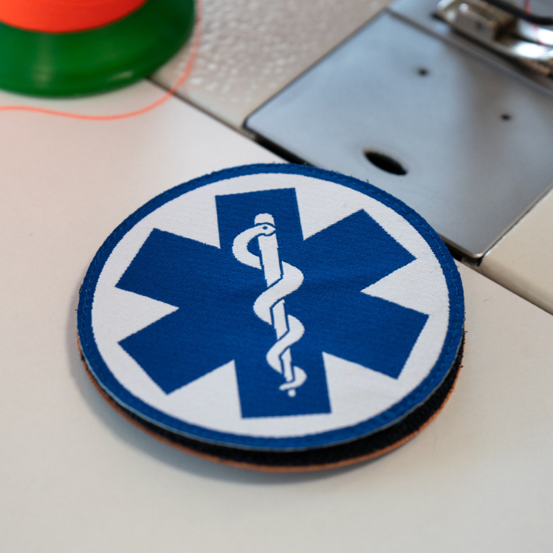 Patch ricamata ad alta definizione con simbolo della Croce e del Caduceo di Esculapio, ideale per operatori del soccorso sanitario, volontari e personale medico. Dotata di retro in velcro, è comoda e pratica da applicare su divise, giubbotti, zaini o altri supporti compatibili.